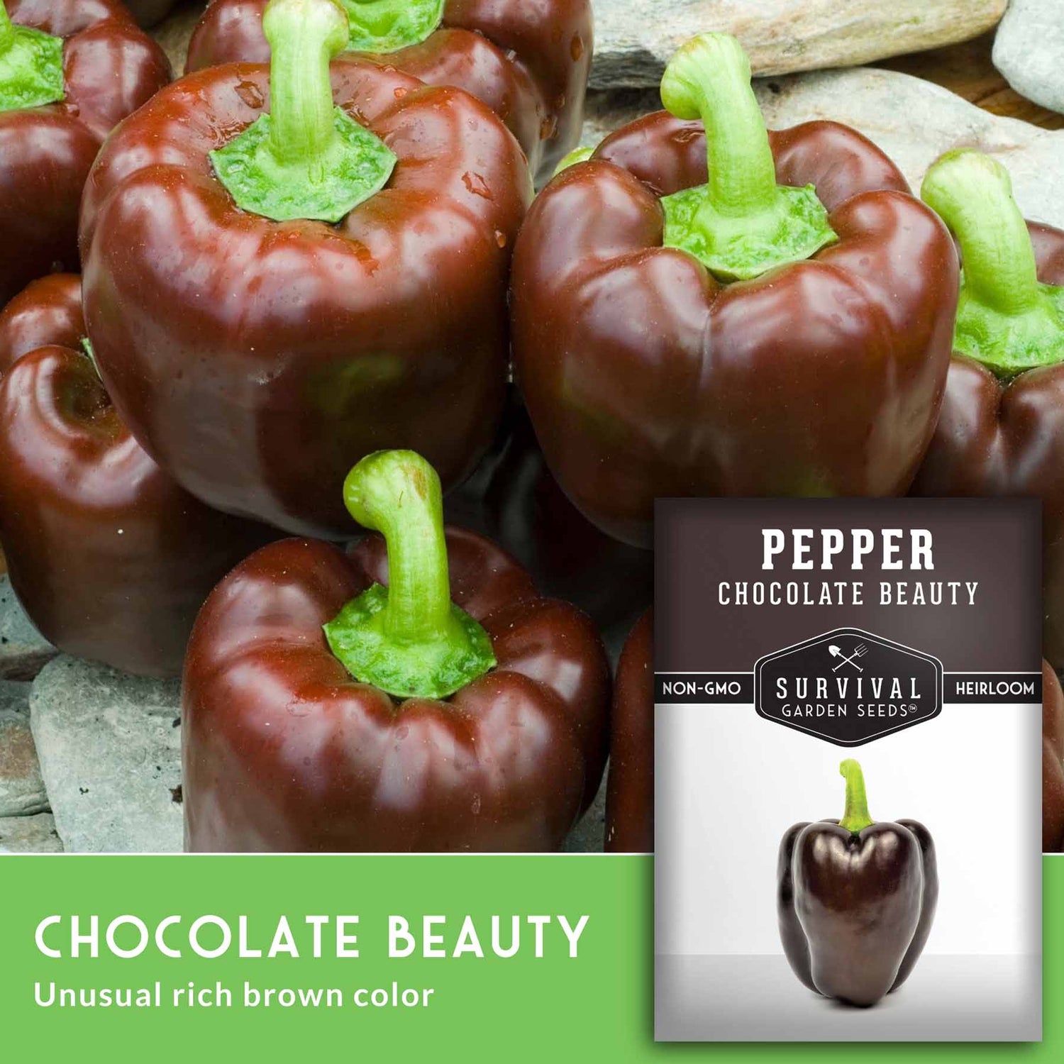 Chocolate Beauty Pepper Seeds – Heirloom Non-GMO Sweet Brown Bell Peppers for Garden & Container Growing