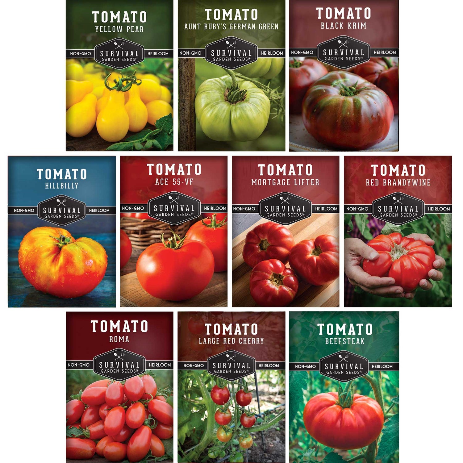 10 Tomato Seed Collection – Heirloom & Garden Favorites for Slicing, Sauces, Canning & Fresh Eating