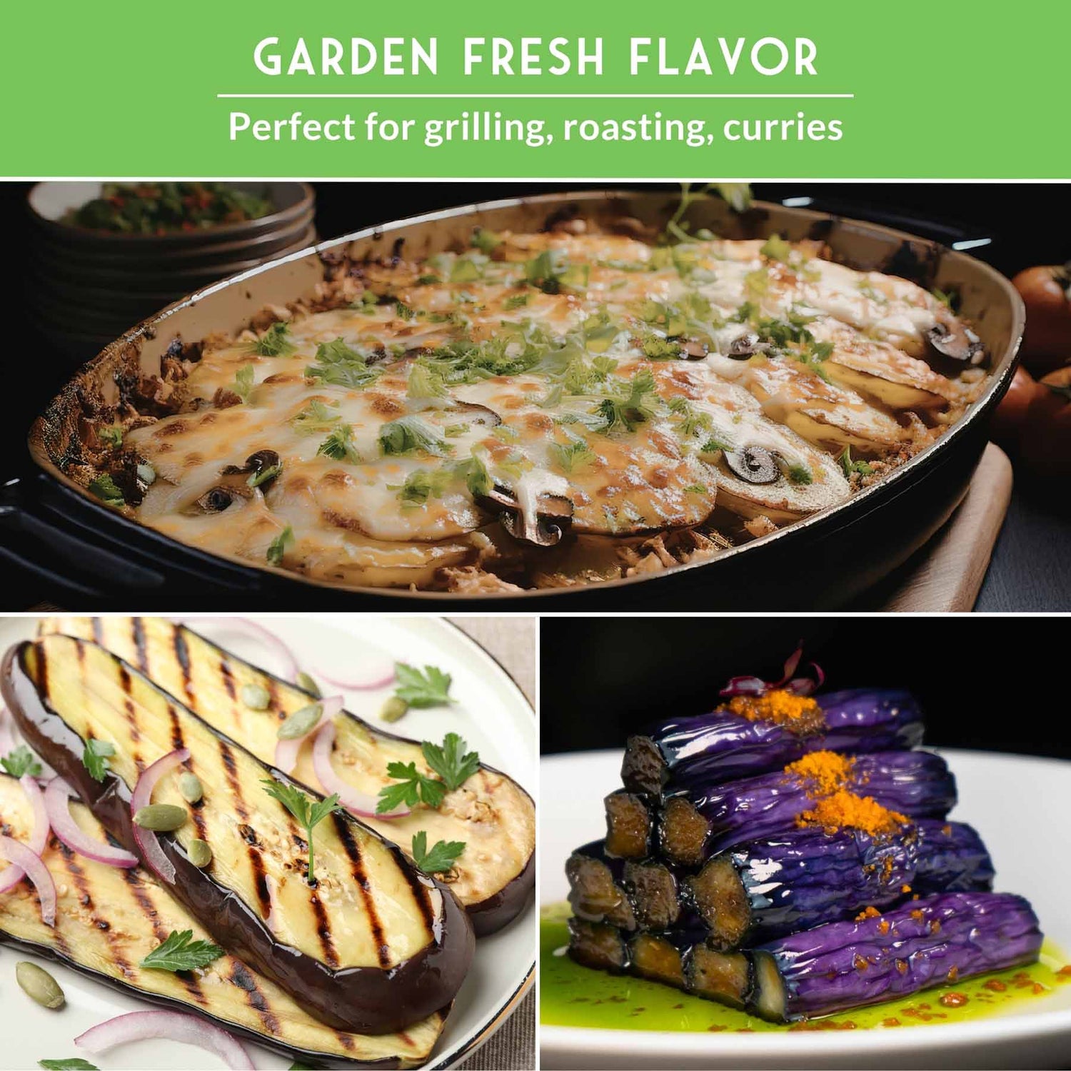 - Long Purple Eggplant (Italian Style): A prolific Italian heirloom with slender, glossy purple skin and tender white flesh. Its mild flavor makes it ideal for grilling, stir-frying, or slicing into classic Mediterranean and Asian dishes. Compact plants can yield up to 4 fruits each—perfect for homesteaders and abundant gardens.
